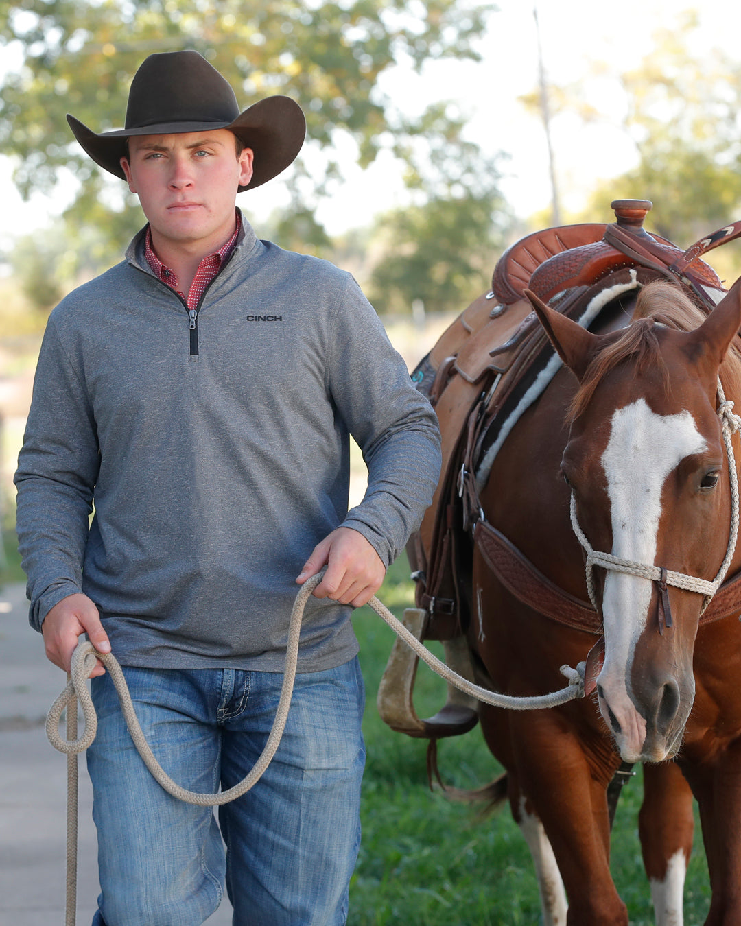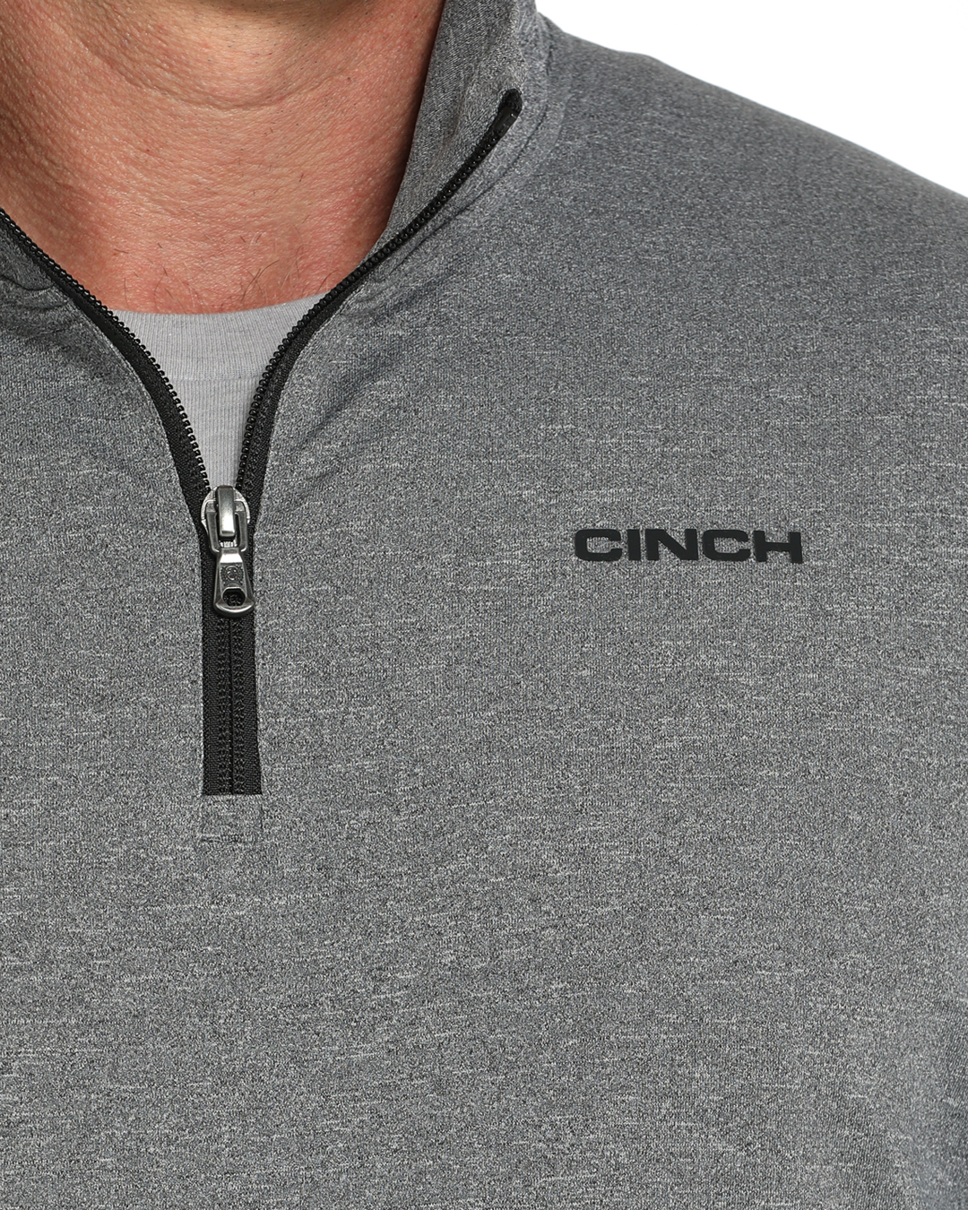 Perfect for layering or wearing on its own. this handsome charcoal ¼-zip pullover by CINCH features stretch friendly poly-spandex construction. a standup collar. and logo heat transfer. Pair with denim and boots for working in the chill.
