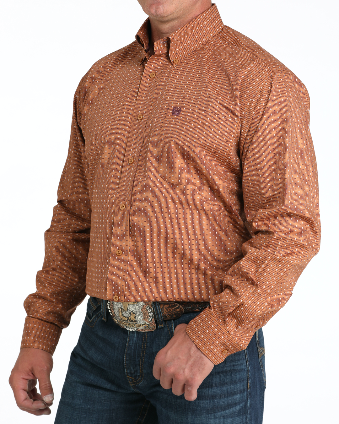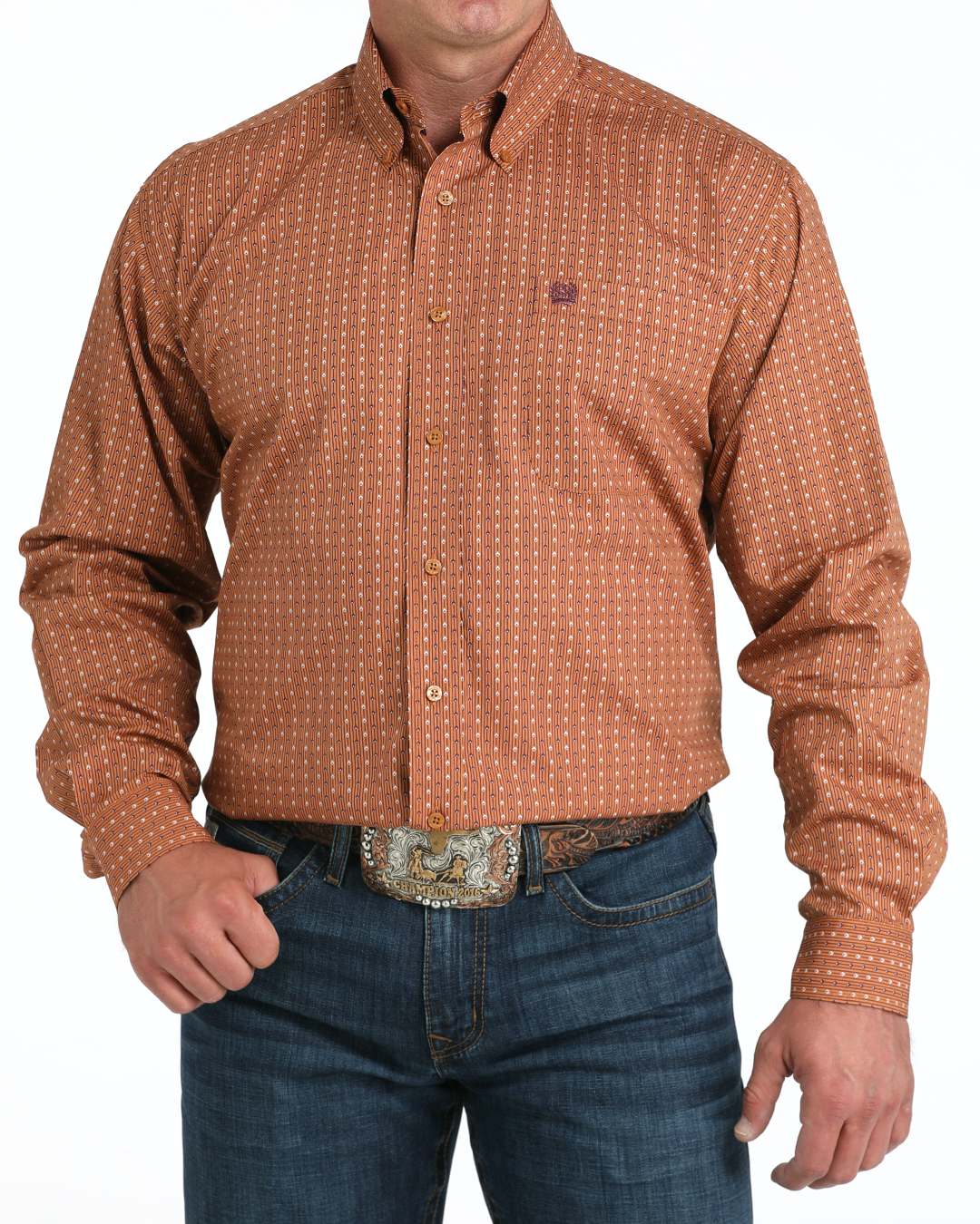 When you’re ready to get to work. so is this brown printed cotton plain weave engineered by CINCH. Our good-looking shirt features an open left front pocket. embroidered logo. and brown buttons.