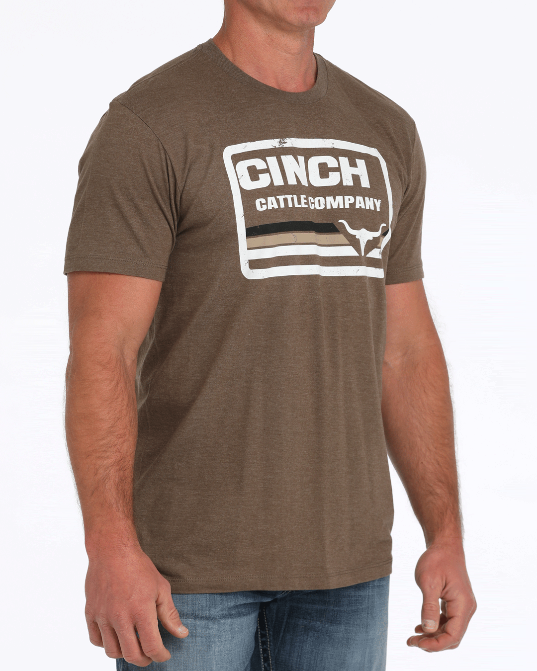 Head to the back forty wearing this versatile CINCH Cattle Company crew-neck tee shirt. which pairs perfectly with denim and boots. Its cotton-poly construction features standard tee styling and a front screen print.