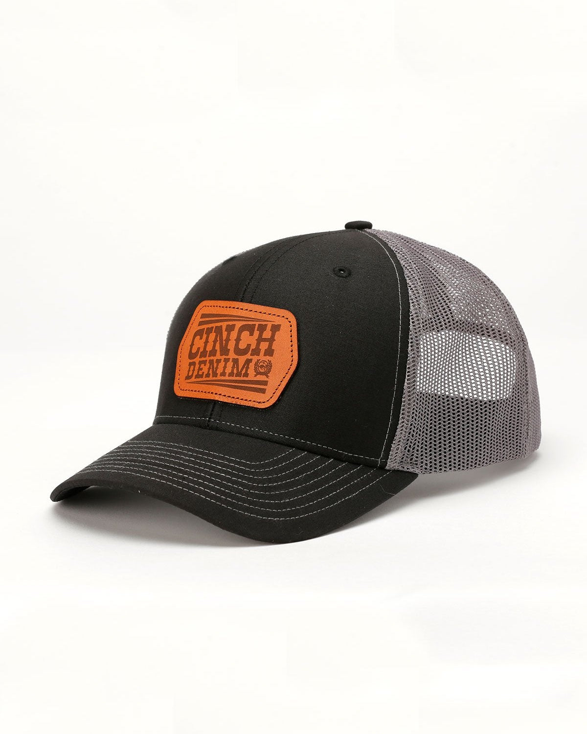 Nothing beats an easy wearing. basic black trucker cap with faux leather logo patch.