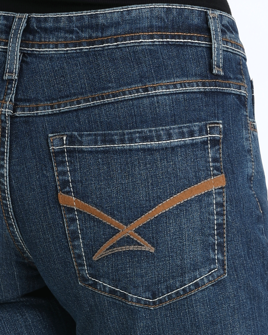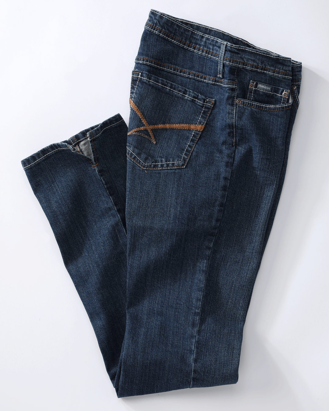 The dark stonewash Kylie is performance-ready. constructed of form-fitting stretch denim. complemented with whiskers and is graced with a simple. camel-colored signature stitch on the back pockets. The kick slit at the leg opening allows these jeans to stack perfectly on top of boots.